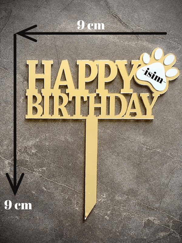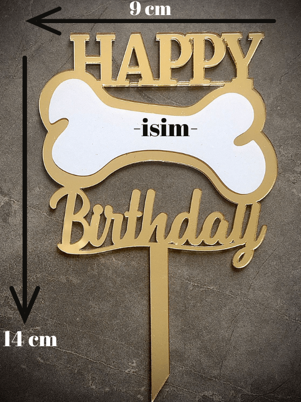 Patisserie tasarımıyla happy birthday pleksiler üzerinde özel yapışkanlı vinil (etiket) vardır, asetat kalemi yada gazlı kalem ile istediğiniz renkte patili dostumuzun ismini yazabilirsiniz. Siyah beyaz/ siyah gold/ gold renk seçenekleri mevcuttur.