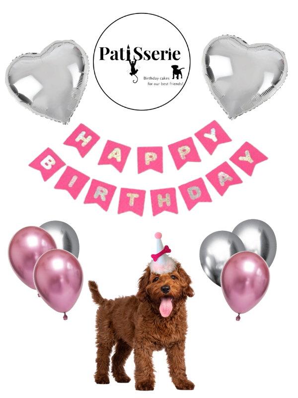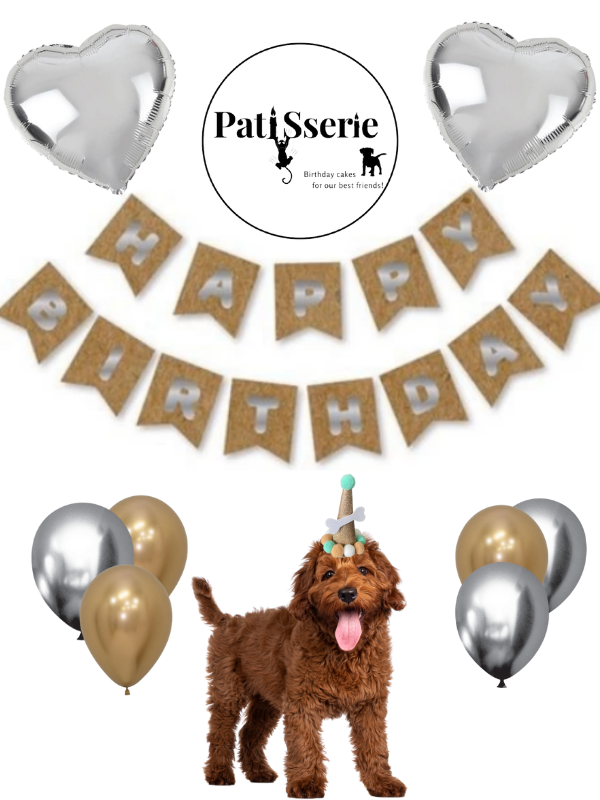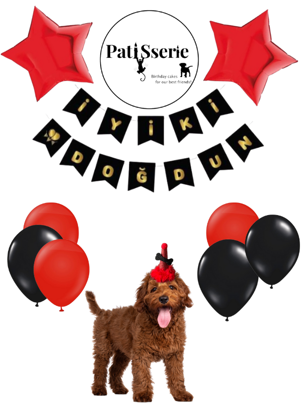 Paket içeriği: 1 set ”İyi ki Doğdun” ya da ”Happy Birthday” yazısı (banner), 2 adet folyo balon, 6′ lı metalik renkli balon ve konsepte uygun köpek/ kedi şapkasıdır.