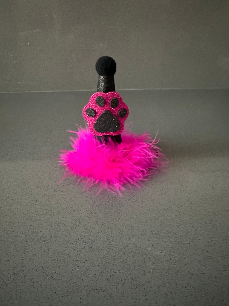 İçi elyaf dolgulu külah şeklinde 2 cm çapında ponponlu kukuleta simli eva ile kemik/ pati tasarıma sahiptir. Taban kısmında otriş tüy bulunur. Şapkanın 30 cm uzunluğunda ince lastiği mevcuttur.